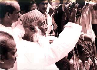 ফারাক্কা ব্যারাজ ভেঙে উড়িয়ে দিয়ে পানির ওপর সীমান্তের দুই পাশের সকল মানুষ, পশুপাখি, জীব-অণুজীবের ‘হক’ প্রতিষ্ঠার যে ডাক মওলানা ভাসানী দিয়েছিলেন সেই ডাক এখনো আমাদের কানে এসে পৌঁছায়নি। যদি আমরা খেয়াল করি তো বুঝব যে ‘হক’ ও ‘অধিকার’ ধারণাগত দিক থেকেও সমার্থক নয়। ‘অধিকার’ আইনী শব্দ। আইন ও চুক্তি করে কে কী পরিমাণ পানি ব্যবহার করতে পারবে সেটা মানুষের মামলা হতে পারে। কিন্তু অন্যান্য জীব বা অন্যান্য প্রাণের ক্ষেত্রে কী হবে? ভারত অবশ্য বাংলাদেশেরই ন্যায্য হিস্যা বুঝিয়ে দিতে পারেনি। জীব-অণুজীবের প্রশ্ন তো দূরের কথা। পানির ব্যবহার এখন পুঁজিতান্ত্রিক সমাজের প্রবৃদ্ধির প্রশ্নের সঙ্গে জড়িত, অতএব পুঁজিতান্ত্রিক ব্যবস্থার মধ্যে দুর্বল দেশ হিশাবে বাংলাদেশ ভারতের কাছ থেকে কিভাবে পানির হিস্যা আদায় করবে? ভাসানী ঠিকই ধরেছেন--ভারতের শাসক শ্রেণীর বিরুদ্ধে উপমহাদেশের জনগণের লড়াইয়ের প্রশ্ন বাদ দিয়ে পানির হিস্যা আদায়ের জন্য চুক্তি করবার আশা দূরাশা ছাড়া আর কিছু নয়। কিন্তু পানির ওপর ‘হক’ তো শুধু মানুষের নাই। গাছপালা, পশুপাখি, জীব-অণুজীব কার কী পরিমাণ পানি দরকার তার হিসাব নির্ধারণ করবে কে? পানির পরিমাণ শুধু নয়, পানির প্রবাহ নিশ্চিত করবার সঙ্গে বহু প্রাণ বা প্রাণীর জীবন নির্ভর করে। আর ঠিক এখানেই--এই ফাঁকটিতেই--এই জায়গাতেই আমি দেখি এক দিব্য পুরুষকে, যিনি আমাদের নতুন যুগে নতুন রাজনীতির দিশা দিতে অসুস্থ শরীরে ফারাক্কার বিরুদ্ধে মিছিল নিয়ে এগিয়ে যাচ্ছেন। একই ভাবে আমার বন্ধু আহমদ ছফা ‘জলদেবতা’ বলে অভিষেক ঘটিয়েছিলেন। যাচ্ছেন দলদেবতা মওলানা আবদুল খান ভাসানী ফারাক্কাসহ দুনিয়ার তাবৎ বৃহৎ ড্যাম ও নদীপ্রবাহ রুদ্ধ করে প্রাণ ও পরিবেশ ধ্বংসকারী করপোরেশান, রাষ্ট্র ও পানি ব্যবসায়ীদের বিরুদ্ধে। জলদেবতা যাচ্ছেন জলের জল্লাদের বিরুদ্ধে যুদ্ধ করতে। তারাই এই যুদ্ধে শামিল হবে যারা মোমিন। তারাই এই যুদ্ধে জয়ী হবেন যারা কমিউনিজম কায়েম করা বা পুঁজিতান্ত্রিক ব্যবস্থা ধ্বংস করে বিশ্বমানুষের একটি মাত্র সমাজ গঠন আর ধর্ম কায়েম করবার মধ্যে স্নায়ুযুদ্ধের পরে আর কোন পার্থক্য আছে বলে মনে করেন না।