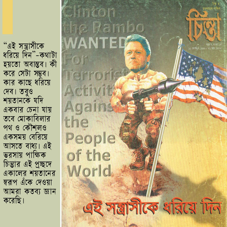 সিলভেস্টার স্ট্যালোন নামে অতিশয় পেশিবান এক অভিনেতা আছে মার্কিন যুক্তরাষ্ট্রে। র‌্যাম্বো নামক এক যুদ্ধবাজ নায়কের ভূমিকায় ইনি অভিনয় করে থাকেন। খালি গায়ের মারমুখো মাস্তান। নখ থেকে চুল পর্যন্ত যুদ্ধাস্ত্রে সজ্জিত। এই নায়ক হামেশাই অন্য দেশ আক্রমণ করে। মার্কিন স্বার্থ রক্ষা করবার তাগিদ তার ট্রিগারে, “মুক্তি” আর “গণতন্ত্র” নামক মন্ত্র তার বারুদে সদাই ধ্বনিত। তার কাজ দুনিয়ার তাবৎ “খারাপ লোক”-গুলোকে গুলি করে মেরে ফেলা। কোন নীতি নেই, বাছ বিচার নেই। পৃথিবীর একদিকে আছে “গুড গাইস” অর্থাৎ ভাল লোক। ভাল লোকদের নেতার গায়ের রং, বলা বাহুল্য, সবসময়ই সাদা; আর, ম (আরো পড়ূন)