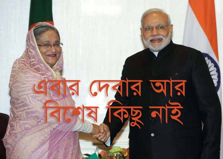মোদির সফর শেষ হয়েছে চলতি মাসের প্রথম সপ্তাহে। মোদি নিজে আগাম অনুমান করে বলেছিলেন তাঁর ফেরত যাবার পরে এই সফর নিয়ে চর্চা শুরু হবে। তা তো অবশ্যই হবে, হচ্ছেও। এগুলোর সার কথা হচ্ছ্‌ দেনা পাওনার দিক থেকে। “হিসাব কিতাবে মোদির দিকেই পাল্লাই ভারি”-- এই সফর শেষে এটাই আমরা শুনছি। এটা না হবার কোন কারণ নাই। সাত তারিখ দিন শেষে রাত বারোটায় (আইনত আট তারিখের শুরুতে )সংবাদ পর্যালোচনায় চ্যানেল আই টিভিতে এসেছিলেন ভারতের দৈনিক টেলিগ্রাফ পত্রিকার এক বাঙলি সাংবাদিক, দেবদ্বীপ পুরোহিত। তিনিও বিস্ময়ের সাথে লক্ষ্য করছিলেন বাংলাদেশ সবকিছুই দিচ্ছে, এটা একপক্ষীয় লেগেছে তাঁর কাছেও। তিনি বলছিলেন বাণিজ্যিক স্বার্থের দিক থেকে কিছু দেয়া আর বিনিময়ে কিছু পাও (আরো পড়ূন)