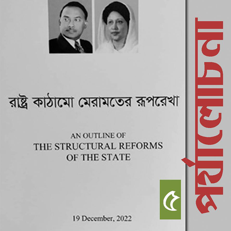 রাজনৈতিক প্রস্তাবনা হিশাবে বিএনপির ‘রাষ্ট্র কাঠামো মেরামতের রূপরেখা’- অতিশয় সংকীর্ণ ও সীমাবদ্ধ। কিন্তু তারপরও বাংলাদেশের বর্তমান জাতীয় রাজনীতির পরিপ্রেক্ষিতে এর বিশেষ গুরুত্ব রয়েছে। সেই গুরুত্বটুকু আমরা দিতে চাই। এর কারন হচ্ছে ক্ষমতাসীন ফ্যাসিস্ট শক্তির বিরুদ্ধে আন্দোলন-সংগ্রামকে এগিয়ে নিয়ে যাবার জন্য এটি পেশ করা হয়েছে। জনগণ এই লড়াই থেকে বিএনপির কাছ থেকে কি পেতে পারে তার একটি ধারনা আমরা এই দলিলে পাই। অর্থাৎ আন্দোলনকে বেগবান করবার জন্য এই ধরনের রূপরেখা জনগণের সামনে হাজির করার প্রয়োজন রয়েছে। আমাদের কাছে আন্দোলন সংগ্রাম গুরুত্বপূর্ণ, তাই রূপরেখাকে আমরা প্রাধান্য দিতে চাই।