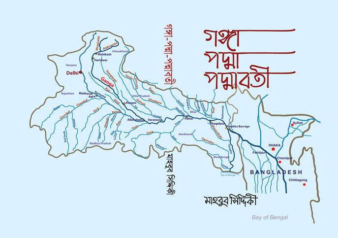 গঙ্গা ও পদ্মা একই নদী। গঙ্গা বাংলাদেশে প্রবেশ করেছে চাঁপাইনবাবগঞ্জ জেলার শিবগঞ্জ উপজেলার মধ্য দিয়ে। বাংলাদেশে প্রবেশের পর গঙ্গা সাধারণভাবে পদ্মা নামে পরিচিত। কেন? পদ্মা নামের উৎপত্তি কোথা থেকে? সাধারণ পাঠকের মনে এ প্রশ্ন আসা স্বাভাবিক। লেখক মাহবুব সিদ্দিকী বইয়ের প্রথম অধ্যায়েই এ বিষয়ে উত্তর দেয়ার চেষ্টা করেছেন। সাধারণভাবে এটাকে পদ্মা নামে অভিহিত করা হলেও সরকারিভাবে অথবা ভূগোলবিদ বা ইতিহাসবেত্তাগণের কাছে এটা গঙ্গা নামেই বিবেচিত। লেখক জানাচ্ছেন, “সরকারি নথি, দলিল, মানচিত্র এসবকিছুর ভিত্তিতে এই তথ্যটিই সঠিক। হার্ডিঞ্জ ব্রিজের ভাটিতে অবস্থিত গঙ্গা/কপোতাক্ষ প্রজেক্ট এই সত্যতার সাক্ষ্য বহন করছে।” তাহলে একে পদ্মা বলা হয় কখন থেকে? কেনই বা বলা হয়? লেখকে দাবি, “প্রথম পদ্মা বা পদ্মাবতী নামটি এসেছে শ্রীচৈতন্য কর্তৃক পূর্ববঙ্গ ভ্রমণ শেষে রাজশাহীর প্রেমতলী(প্রেমস্থলী)নামক স্থানে এসে পদ্মায় স্নান করার মধ্য দিয়ে।” শ্রীচৈতন্যের স্নান করার সাথে পদ্মা নামের কি সম্পর্ক আছে? এর সাথে কি বাংলার ভাবের কোন যোগসূত্র আছে? এ ব্যাপারে লেখক আর কিছুই আমাদের জানান নি। শুধু বলছেন, “যদিও এই ঘটনার সপক্ষে তেমন কোনো তথ্য-প্রমাণ নেই।” হয়ত লেখক এ বিষয়টা নিয়ে পরবর্তীতে আরও গবেষণা করবেন। তারপর পদ্মা নামের উল্লেখ প্রথম কোথায় কোথায় পাওয়া তার একটা আলোচনা করেছেন এই প্রথম অধ্যায়ে।